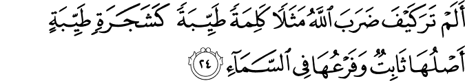 ʾa-lam tara kayfa ḍaraba llāhu mathalan kalimatan ṭayyibatan ka-shajaratin ṭayyibatin ʾaṣluhā thābitun wa-farʿuhā fī s-samāʾi