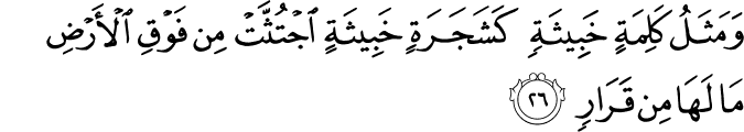 wa-mathalu kalimatin khabīthatin ka-shajaratin khabīthatin-i jtuththat min fawqi l-ʾarḍi mā lahā min qarārin
