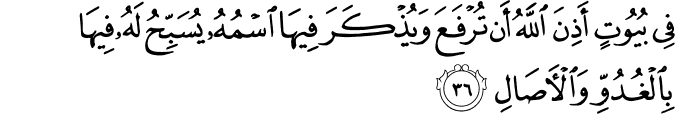 fī buyūtin ʾadhina llāhu ʾan turfaʿa wa-yudhkara fīhā smuhū yusabbiḥu lahū fīhā bi-l-ghuduwwi wa-l-ʾāṣāli