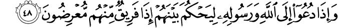 wa-ʾidhā duʿū ʾilā llāhi wa-rasūlihī li-yaḥkuma baynahum ʾidhā farīqun minhum muʿriḍūna