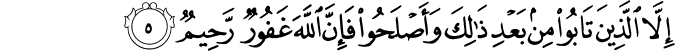 ʾillā lladhīna tābū min baʿdi dhālika wa-ʾaṣlaḥū fa-ʾinna llāha ghafūrun raḥīmun