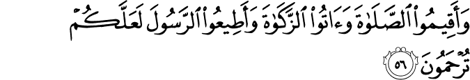 wa-ʾaqīmū ṣ-ṣalāta wa-ʾātū z-zakāta wa-ʾaṭīʿū r-rasūla laʿallakum turḥamūna