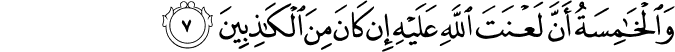wa-l-khāmisatu ʾanna laʿnata llāhi ʿalayhi ʾin kāna mina l-kādhibīna